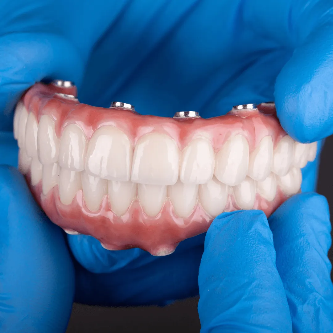 All-on-4 Dental Implants use just four titanium implants to support a full arch of teeth. Unlike placing individual implants for each missing tooth, this method is quicker, more affordable, and ideal for full-mouth dental implant solutions.